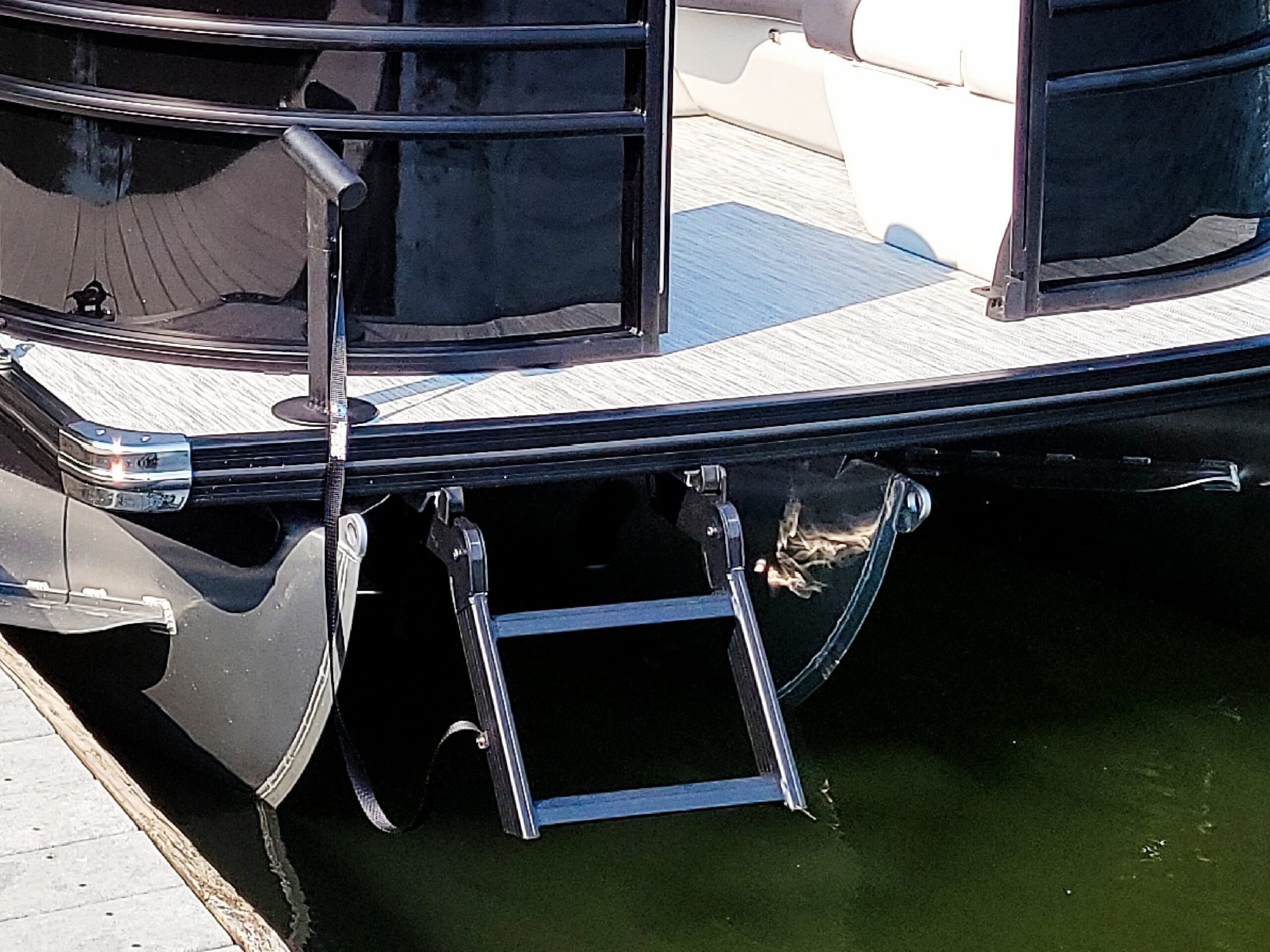 LilliPad™ Marine’s two-step Beach Ladder provides the perfect way to get on and off the bow of your pontoon boat when beached. The Beach Ladder attaches to the boat with mounting brackets that are permanently installed on the underside of the deck. When you’re ready to use your Beach Ladder, simply slide the ladder into the brackets and pin them in place. The Beach Ladder handle is also removable and attaches to the boat with LilliPad™ Marine’s Innovation Award winning Ghost Mount System. The Ghost Mount is smaller than a quarter on the deck of your boat so you will not have any obstructions when the handle is removed. To install the handle, simply spin the bolt on the bottom side into the Ghost Mount. Installing your ladder at the beach will take less than a minute and you’ll love being able to comfortably get on and off of your boat.