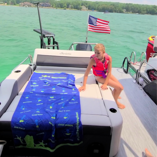 Everyone who has a LilliPad Diving Board is an official member of the LilliPad Dive Team! Sport some TEAM GEAR and add to your fun in the sun with a LILLIPAD DIVE TEAM TOWEL! If you already own a LilliPad Diving Board you know the #1 question your kids (and kids at heart) ask while standing on the diving platform is, “What Should I Do?” Now, you have 24 answers to give them with the help of our Team Towel!